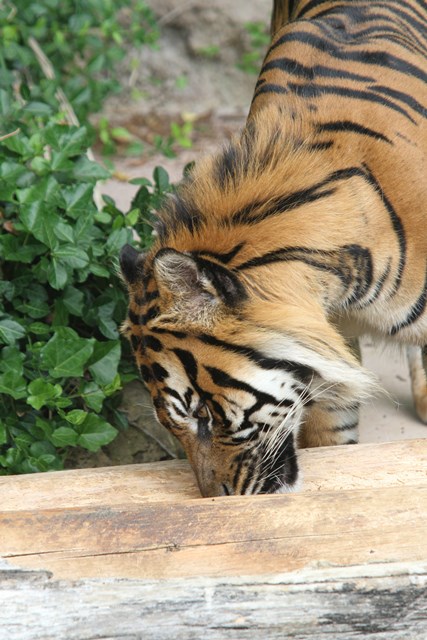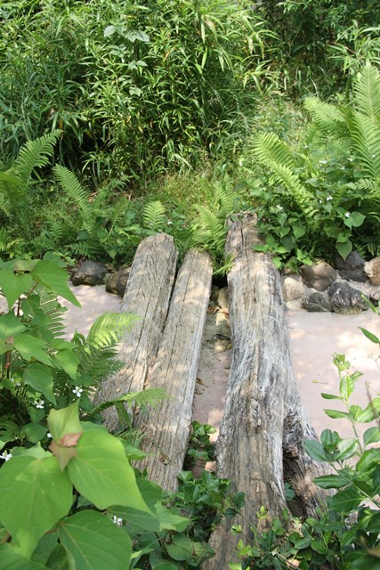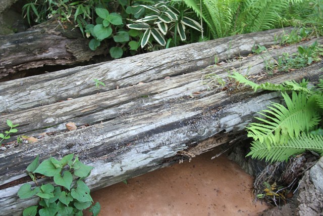 実は、下流に使用した丸太は、以前ウンピョウの寝室に、爪とぎ用に入れてあったものなのです。