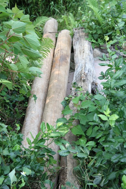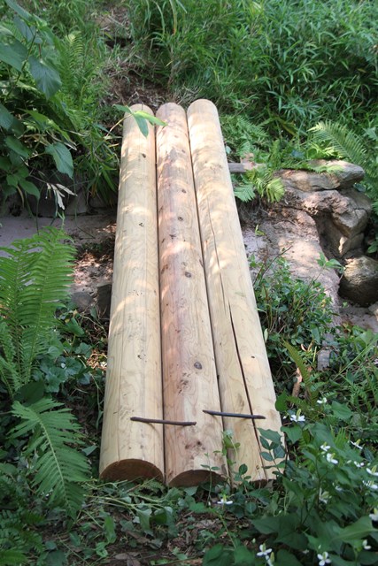 下流部分の橋も、爪とぎ痕等でかなりボロボロなため、こちらも併せて計5本の丸太を取り換えました。