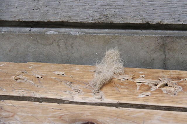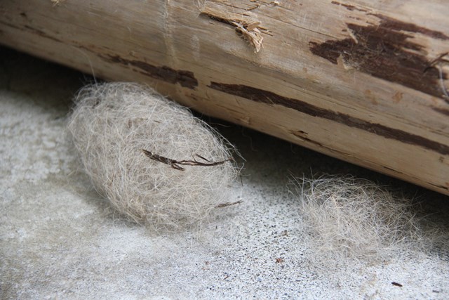 ある風の強い日、外の運動場には、風によって集められた体毛がありました。↓