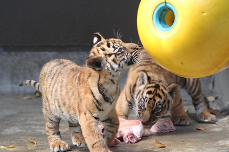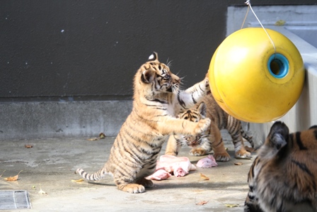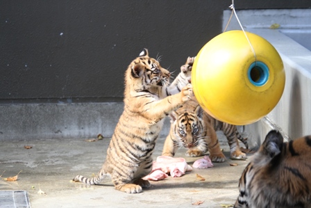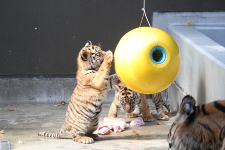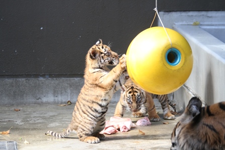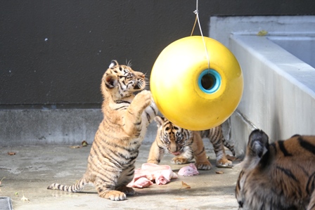 しかしこちらの1頭は、餌の方が気になってしまい、遊ぶことはありませんでした。