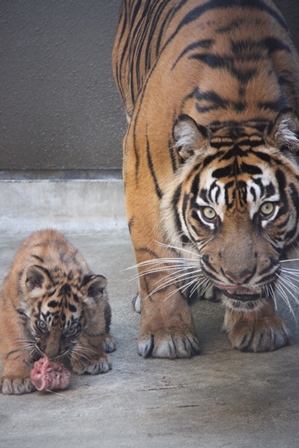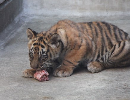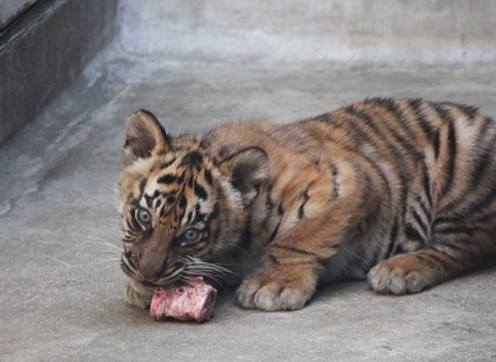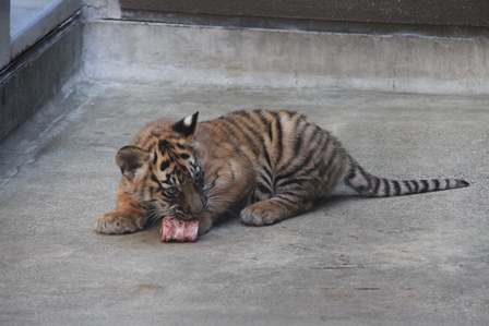 成獣はこれくらいの骨なら食べられますが、子トラたちにはまだ無理なようです ((+_+))