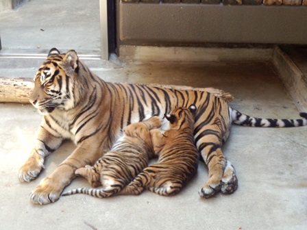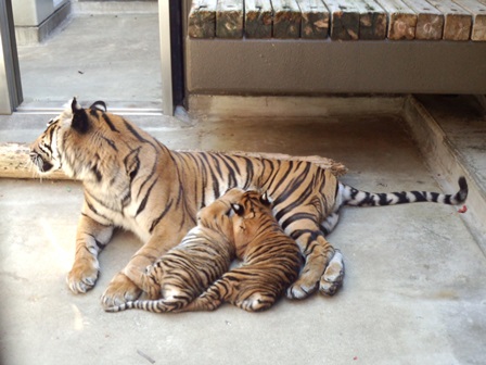 更新日:2014.11.10大きくなっても・・・ 更新日:2014.11.10 大きくなっても・・・ 子どもたちは体重が10kgを超えていますが、まだまだオッパイを飲んでいます。勿論、回数は少なくなっていますが・・・デルは、後ろ足を持ち上げ、飲みやすいように協力してあげます(^U^)あらあら、下の子は先にオッパイを飲み始めていたのに、後から来た子に乗られて・・・2頭共良い位置で落ち着きました(^^)デルも安心するのか、目を細めて授乳していました!飼育展示係石和田 研二 この記事をシェアする Facebook Twitter LINEで送る 大きくな… 新しい遊…
