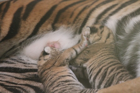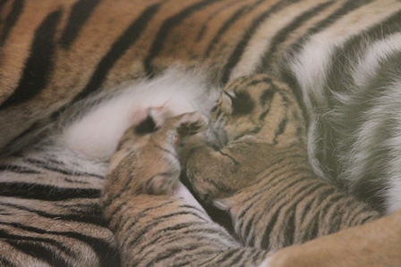 子どもたちの生存競争は激しいようで、生後2日目には、まだ目が開いていない状態にもかかわらず、お母さんのオッパイを巡って、子ども同士で喧嘩が見られました。