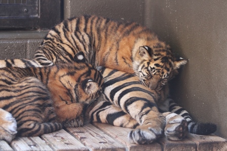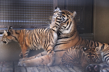 上に上がれて、2頭揃ってオッパイを飲んでいます。