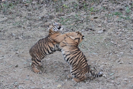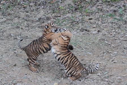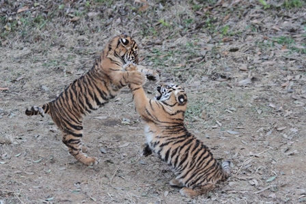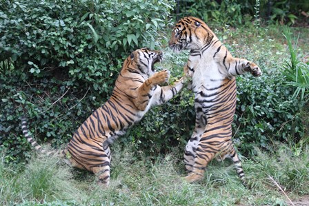 大きな前肢から爪を出して、本気のじゃれ合いです!