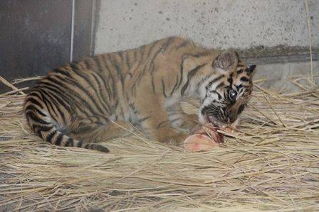 まだ上手に食べられませんが、今後は子ども用に小さくしたエサを与えていく予定です。