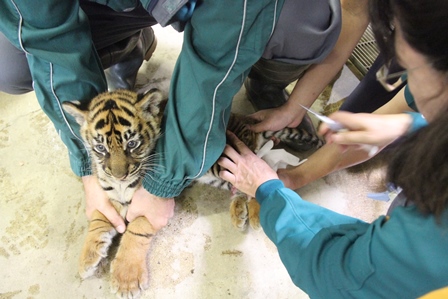 おっと今度は、子トラが押さえつけられているではありませんか!