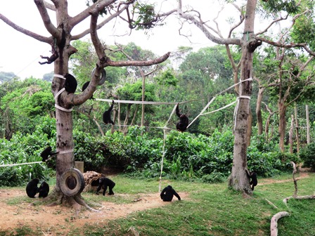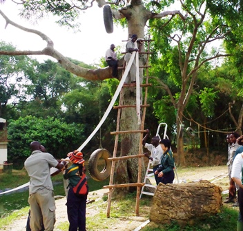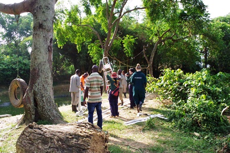 UWECのスタッフと日本のスタッフ皆で設置した消防ホースに