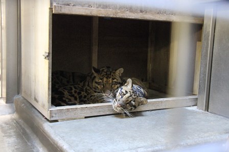 ウンピョウ舎の4頭は、皆床暖が大好きですね~