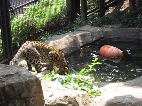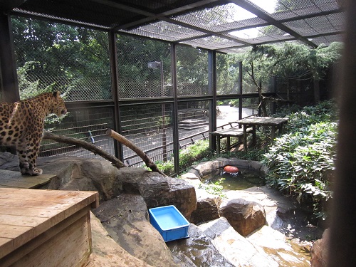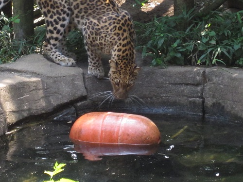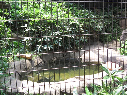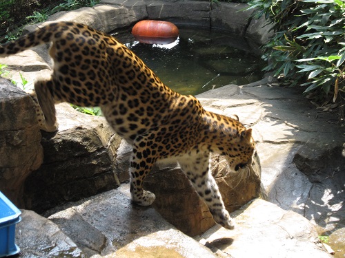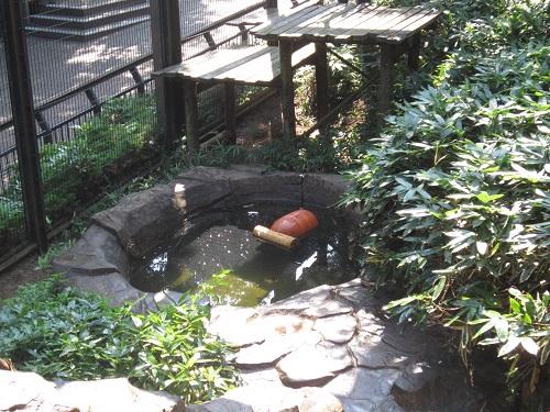 アムールヒョウのダッシュの展示場にある池に水を溜めてみました。