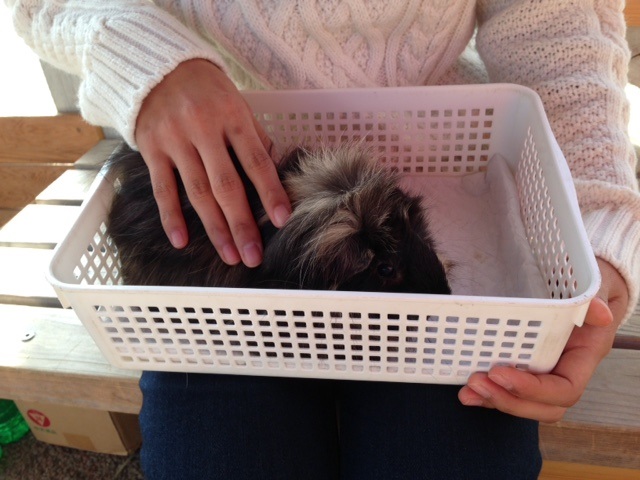 (触る時は、かごの中でやさしく背中を撫でてあげてね)