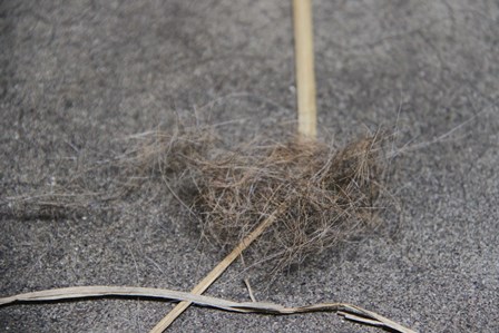 夜間過ごした寝室には、あちらこちらに抜け落ちた体毛が・・・