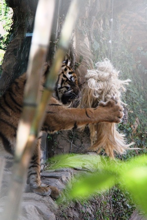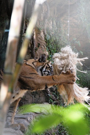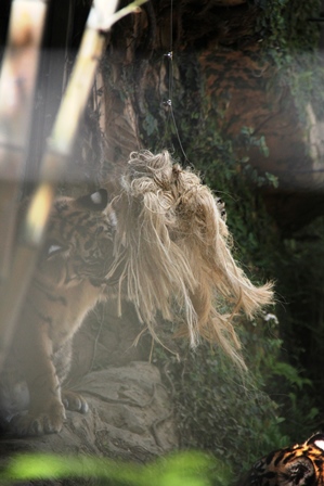 ロープの端っこに咬みついて、引っ張てほぐすのは楽しいのかな??