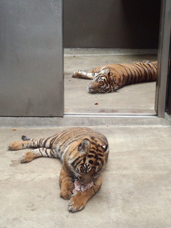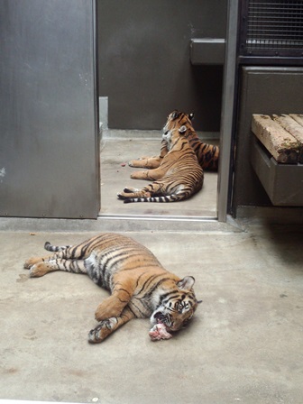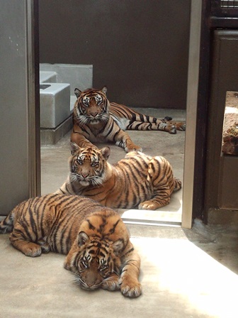 更新日:2015.05.22遠近法? 更新日:2015.05.22 遠近法? いかがでしょう??3頭とも大きさが変わらないように見えませんか??↑ これなんか、手前にいるミンピの方が、奥のデルより大きく見えませんか?朝の餌をだいたい食べ終え、まったりした至福の時を過ごすデルさん親子なのでした・・・(*^_^*)飼育展示係石和田 研二 この記事をシェアする Facebook Twitter LINEで送る また体重… 仲間外れ…