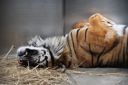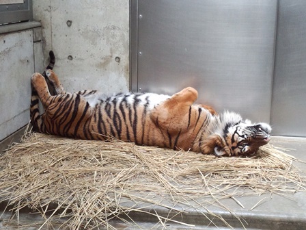 気持ち良さそうにワラの上でひっくり返ってますね~(*^_^*)