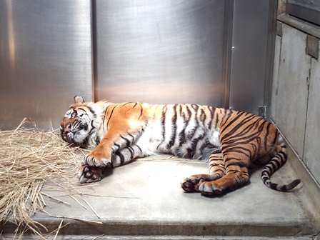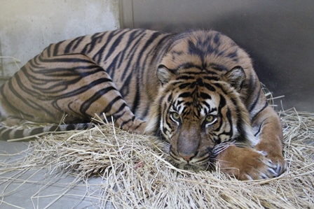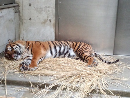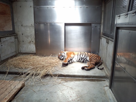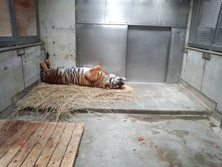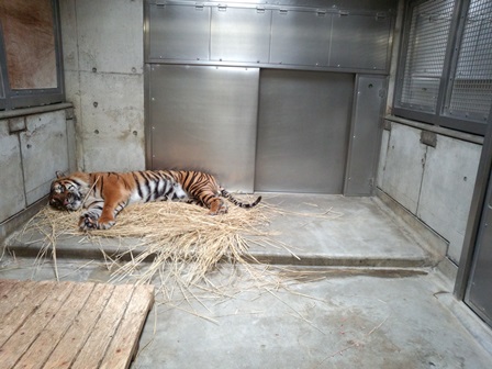 寒い時期は、冷たいコンクリート上は気の毒なので、多目にワラを与えます。