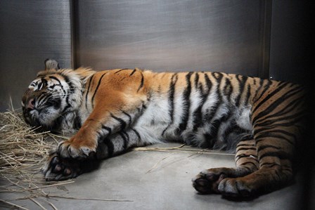 ガンターの様子を観察していると、P.M.、展示場から戻り餌を食べ終えると、