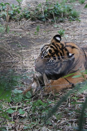 子トラたちは、おとなのトラが見向きもしないものまで、遊び道具にしてしまうんですね~(・o・)