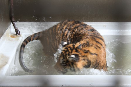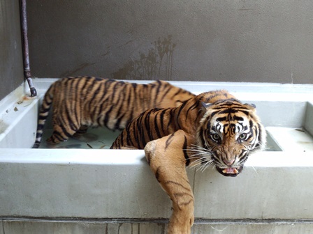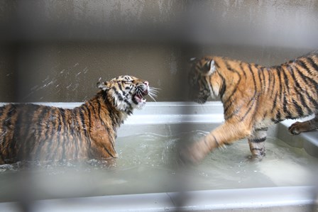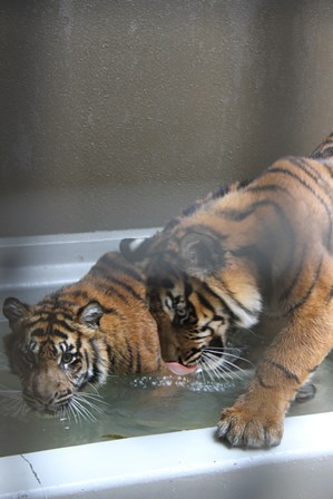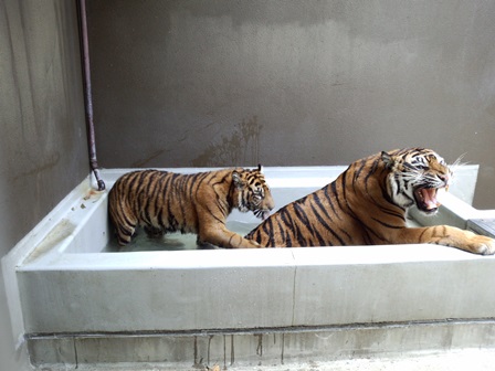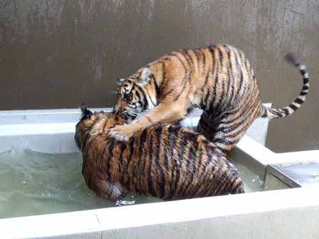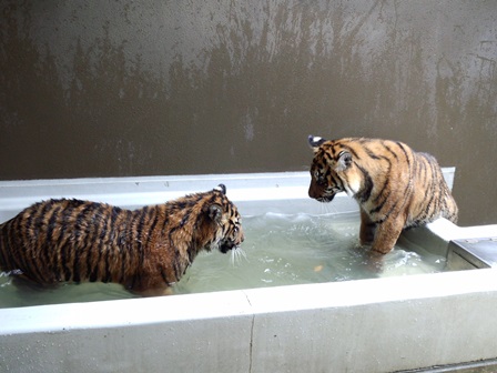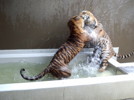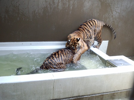 トラたちも暑そうにしていたので、今シーズン初めてプールに水を入れました!(^^)!