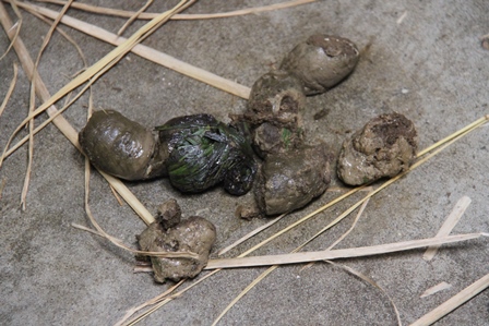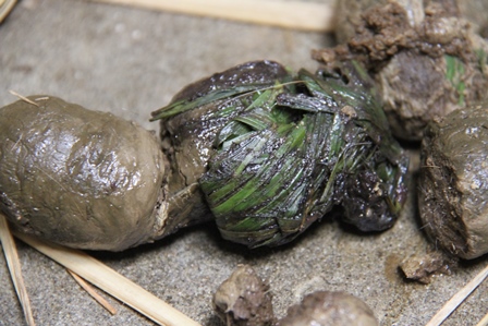 この写真はトラの糞なのですが、草が混じっていませんか??