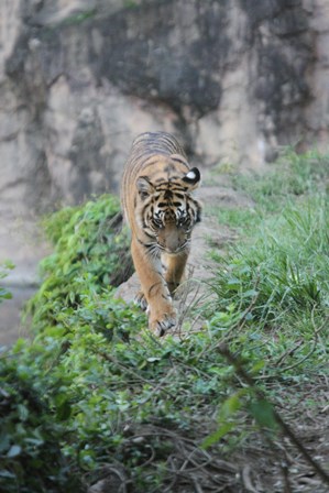 ガラス面だけでなく、園路から観察していても子トラたちから見られることもしばしば。