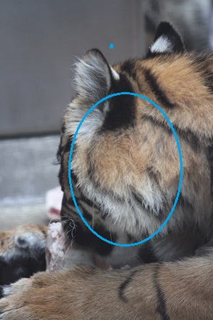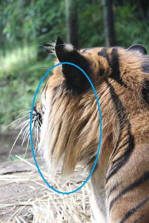 現存するトラでは、最も小さい亜種になりますが、外見的特徴の一つに、頬の毛が長いことが挙げられます。
