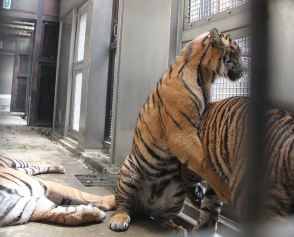 ズーラシアのトラ舎の構造上親子は 、お父さんのガンターくんの