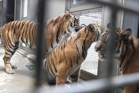 トラは鼻を鳴らして挨拶しますので、ズーラシアの展示形式では無理ですが、野毛山の様に
