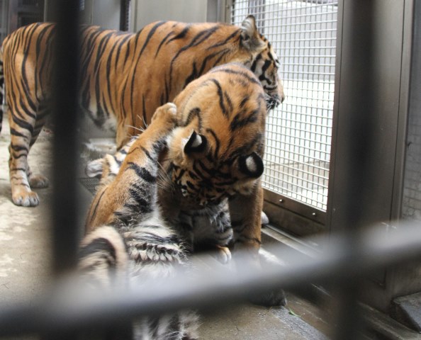 ガンターが奥の方へ行ってしまうと、子トラたちは姉妹げんかを始めてしまいました・・・(・_・;)