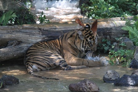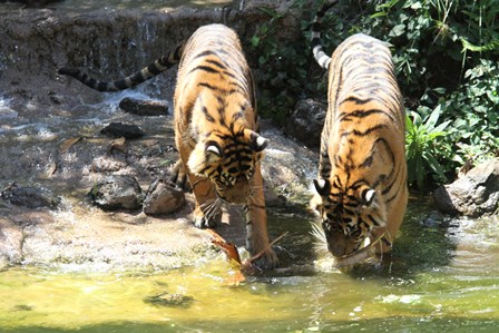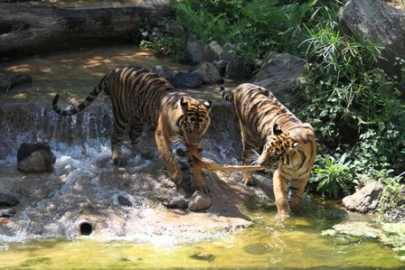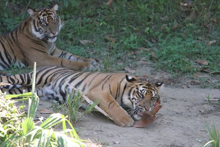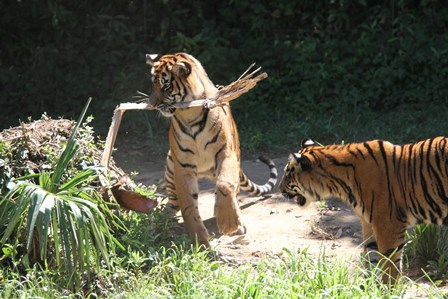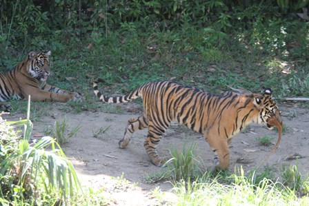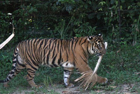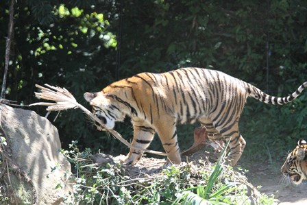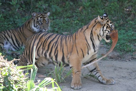 トラの入れ替えを終えて、少ししてから園路に回ると子トラが何かを咥えていました(゜o゜)