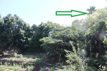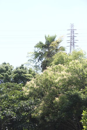 どうやら、ヤシの枯葉が強風によって展示場内に落下したようです。
