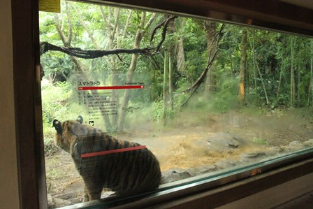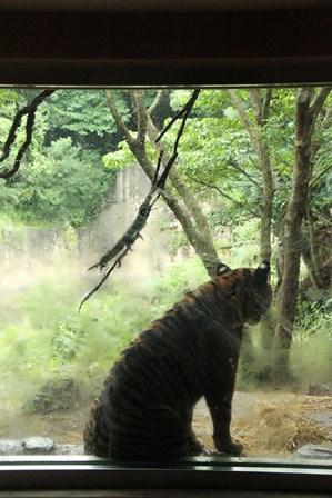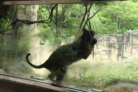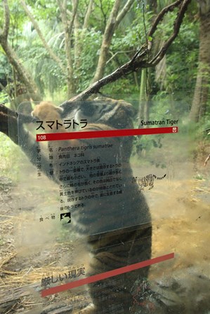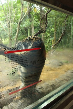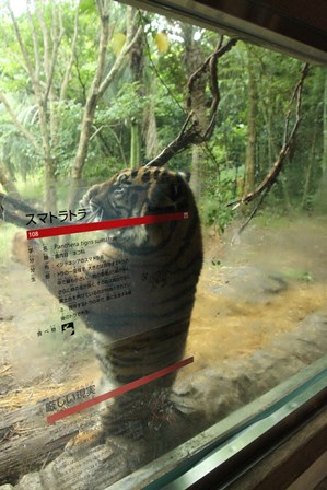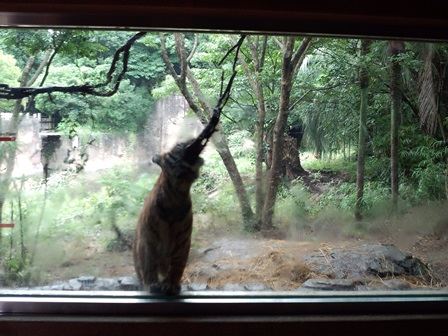 誕生日の翌日から破壊し始めていた植栽の幹に咬みついているトラが・・・(゜o゜)