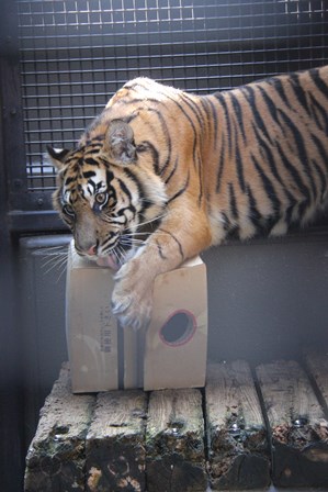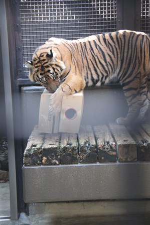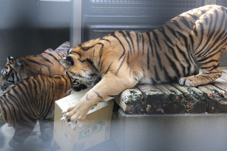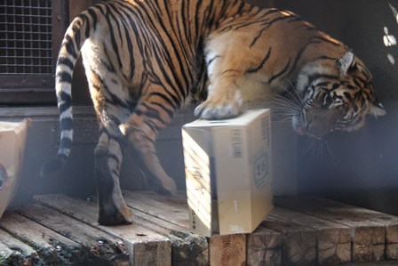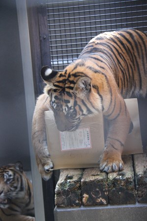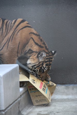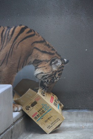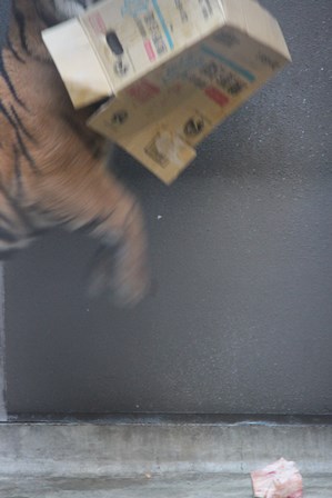 先月下旬、再び段ボールを与えるため準備をしていると・・・