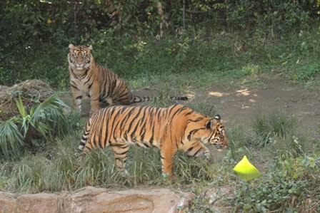 太陽が低くなり始めているので、展示場の奥の木々の隙間から入って来る