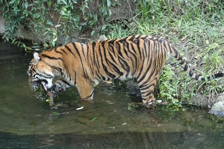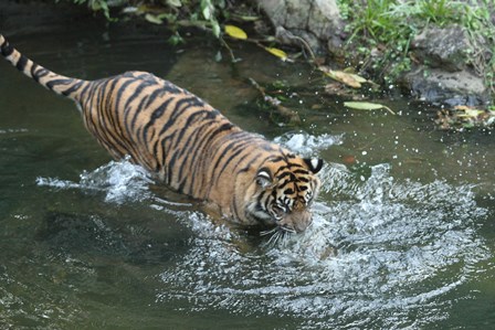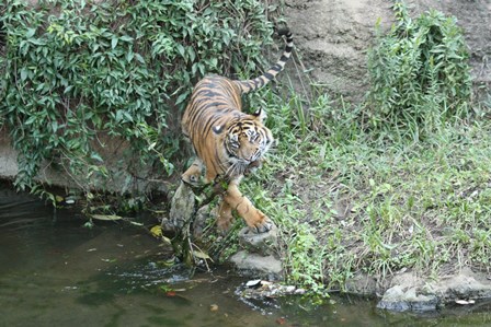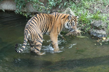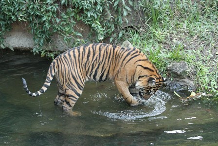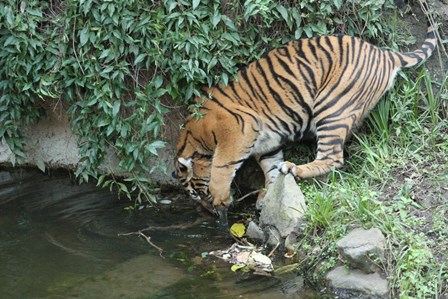 水中に落ちないように、後ろ足は石に引っかけてね(*^_^*)