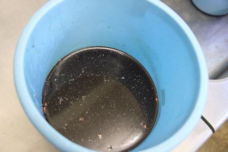 引き出し式の水飲みを引き抜き、水を捨て、血汁を入れます。