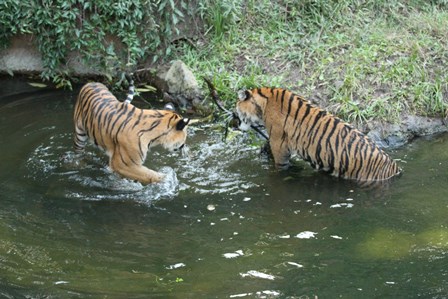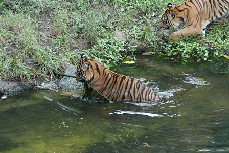 ダマイが怯んだ隙に枝を咥えなおして・・・
