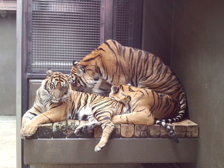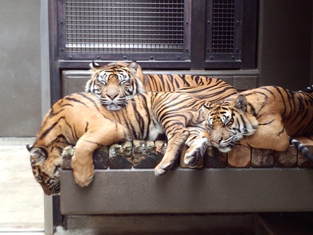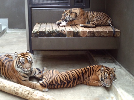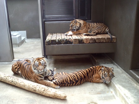 ダマイのみ、まだ大腿骨を齧っていますが、デルとミンピは食べ終えて休息中の様でした。