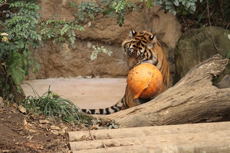 ガラス前で大事そうにフロートを抱えているダマイ!