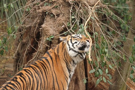 デルは、木の枝にくくりつけられた縄が気になる様子。
