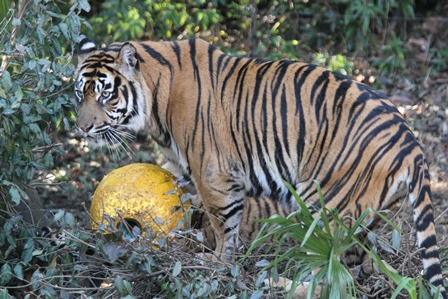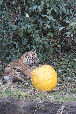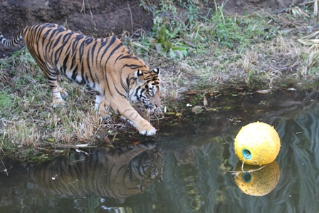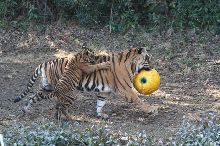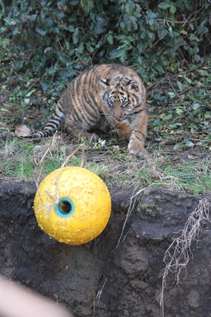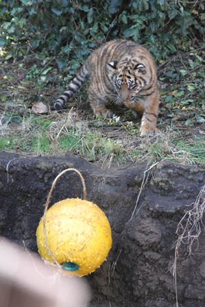 台上から落ちてきたボールをゲットしたダマイ。