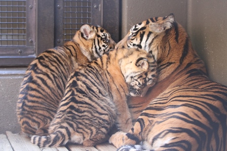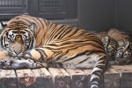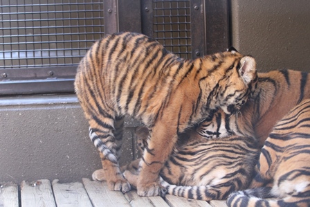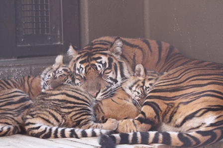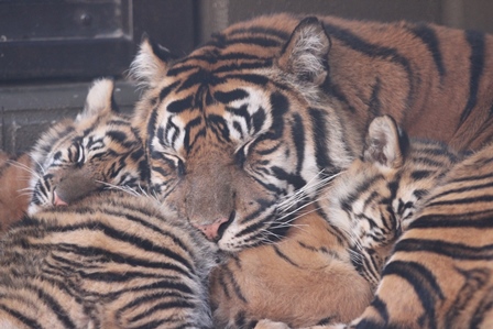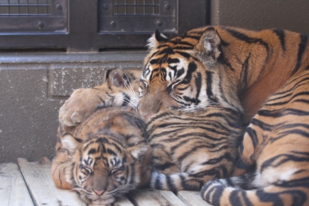 トラたちも身を寄せ合って寒さをしのいでいるようです(-_-;)