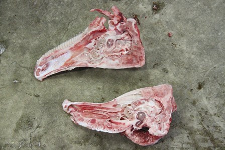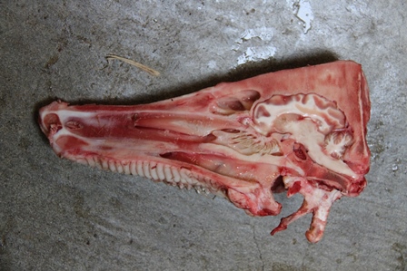 ちょっとグロテスクですが、豚の頭骨を半割にしてみました。↓