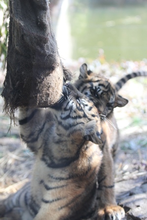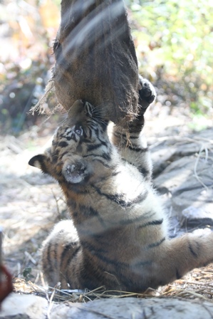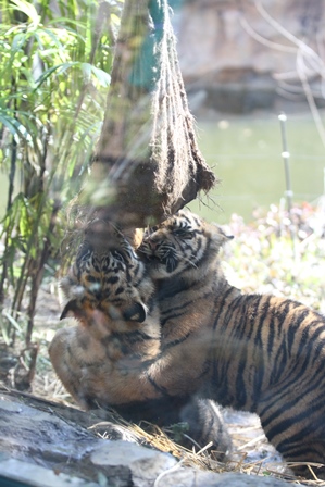 立ち上がって抱えたり、咬みついたり・・・