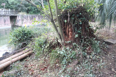 これは土の流出を防ぐ土止めの役目もしていますので、崩壊させないで欲しいのですが・・・(-_-;)