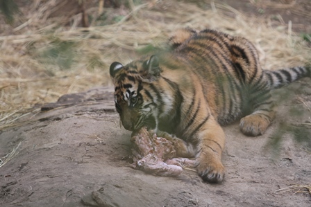 可愛そうに、デルはワイヤーに残った肉片を齧り始めました(-_-;)