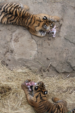それぞれ肉塊を食す子ども達。