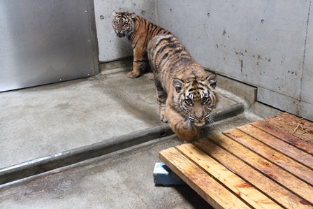 ダマイは伏せたりしながら、そのうちスノコの上へ!