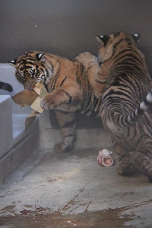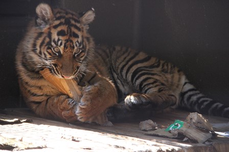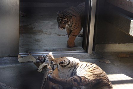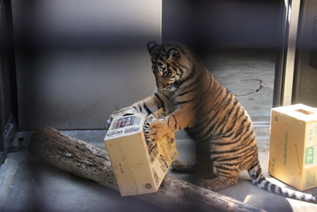 掃除は大変ですが、子トラたちが楽しそうに遊んでいる姿を見れば、