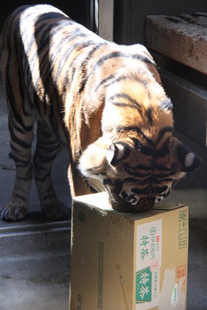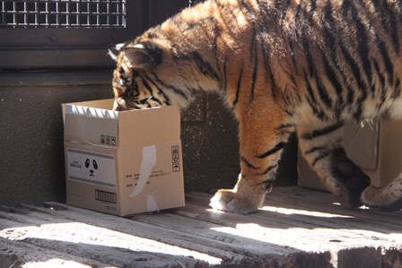 今回は、いつもと違った形状の段ボールも与えてみました(^^)v